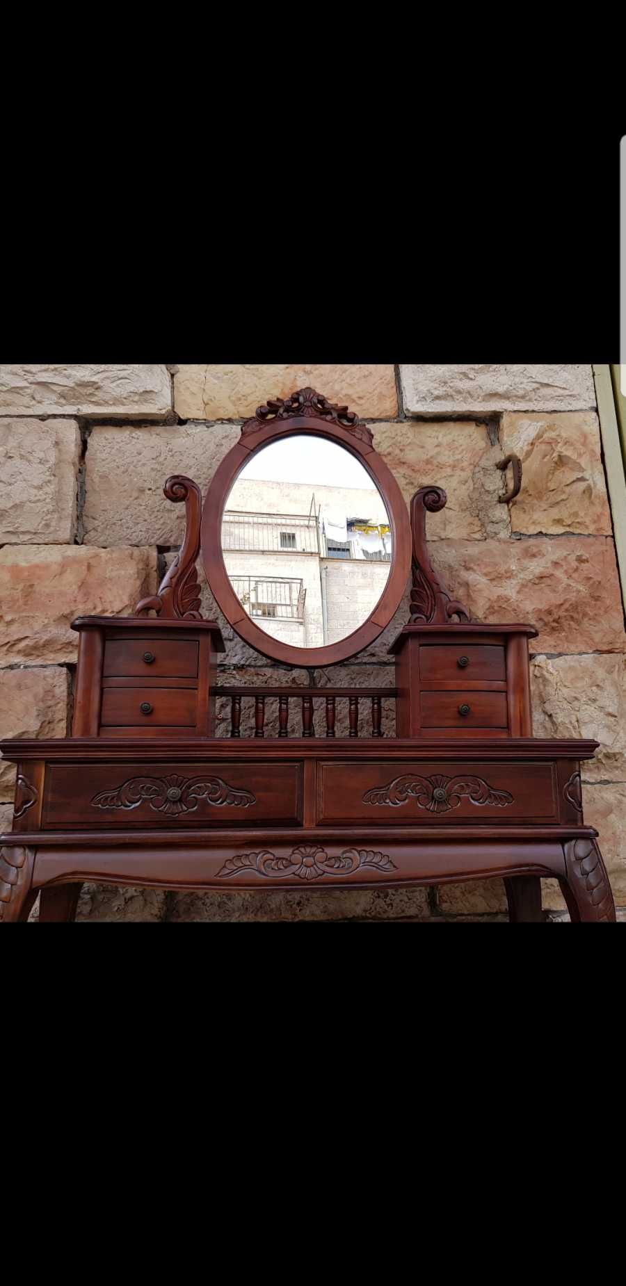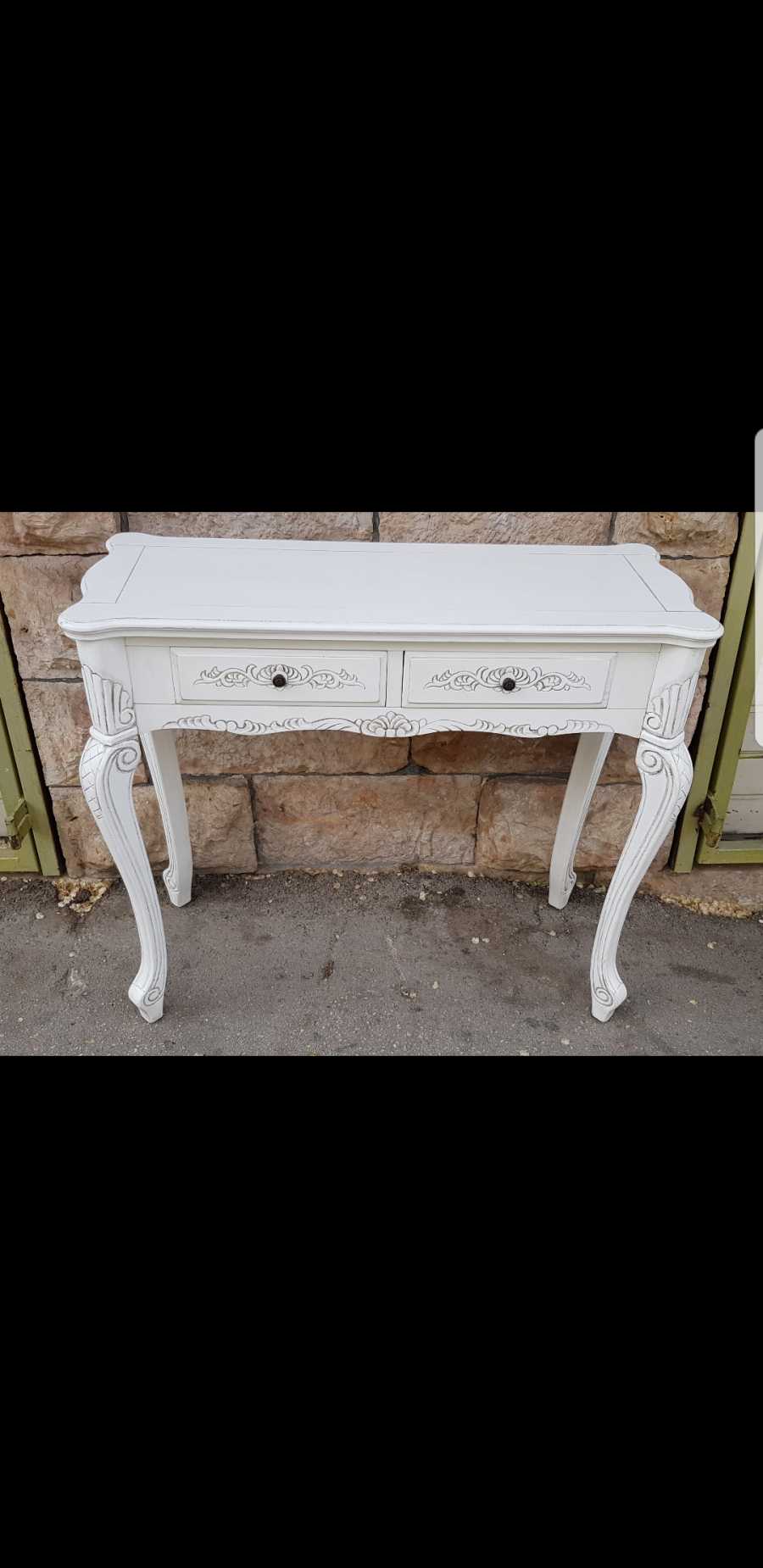 שידת קונסולה לכניסה או אפילו לשולחן עבודה בשילוב שתי מגירות לפתיחה קלה ואיכסון מריברי עשוייה מעץ מלא בגימור ונגה אגוז בשיחוב גילופים מעוצבים