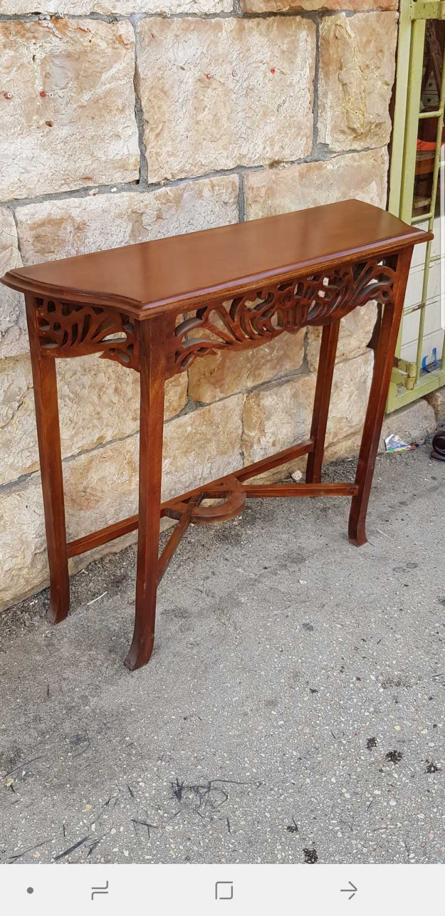 שידת קונסולה צרה מעץ מהגוני מולבן בגימור מעודן