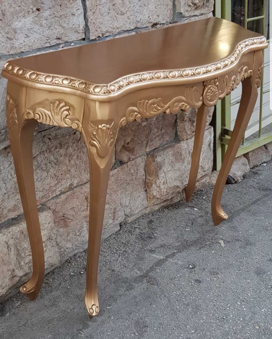 קונסולה מגולפת מעץ מלא בגימור זהב